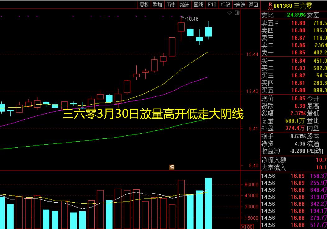 三六零3月30日2.3%高开低走放量大阴线是洗盘还是出货