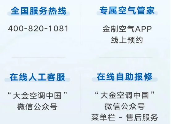 空调使用中如有任何疑问或清洗保养需求,大金官方提醒广大消费者,可以通过拨打官方电话,金制空气 APP、“大金空调中国”官方微信公众号以及在线人工客服等官方途径获得专业解答与服务,避免虚假广告误导,或因选择无专业清洗资质的机构而遭遇误操作,导致机器受损,造成不必要的损失。
