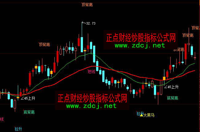 DRAWTEXT(CROSS(趋势线,0) AND 黑马线<40,(LOW * 0.96),'▲大黑马'),COLORYELLOW;