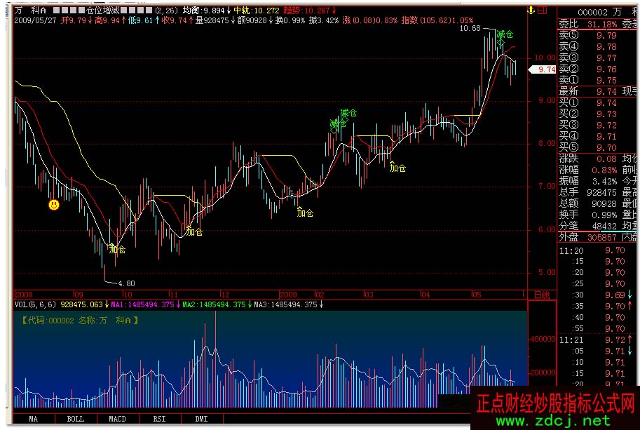 DRAWTEXT(CROSS(84,var7),H*1.035,'减仓'),COLOR00FF00 ;
