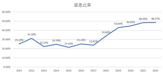 在大的战略上,部分产能搬迁到云南是应对未来新时代的进可攻退可守的最优策略,与资产结构、产能结构同时发生变化的是宏桥股东回报的变化,以当前宏桥的资产负债表,大的资本开支周期已经告一段落,现阶段资本开支的大头可能是云南产能搬迁,远期的资本开支可能是绿电投资或者产业链延伸的投资,以目前宏桥千亿级总资产,百亿级经营现金流,体量上是可以覆盖的,不管是家族利益的安排,机构股东的诉求,都指向了提高分红回报股东,从2017年开始,公司的分派比例持续提高,带动股息回报上升。