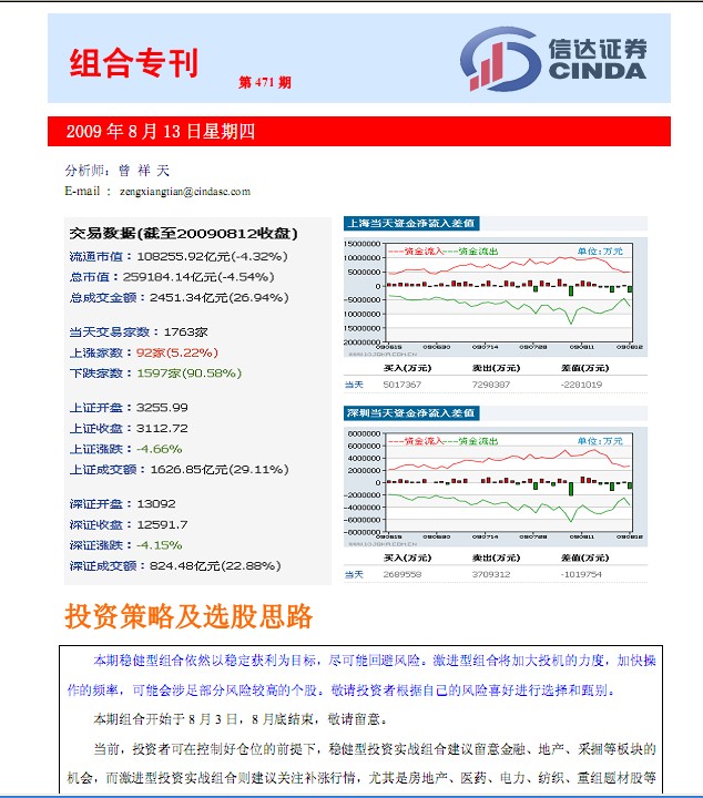 8月13日信达证券组合专刊