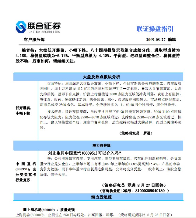8月28日联合证券操盘指引