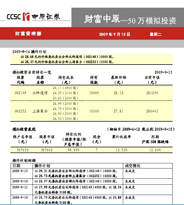 9月15日50万模拟投资