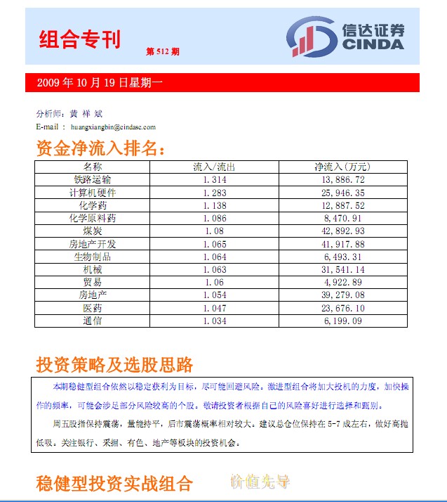 10月19日信达证券组合专刊
