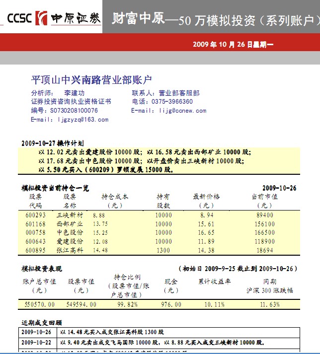 http://www.zdcj.net 2009-10-26 来源:东方财富