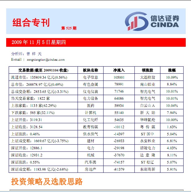 11月5日信达证券组合专刊
