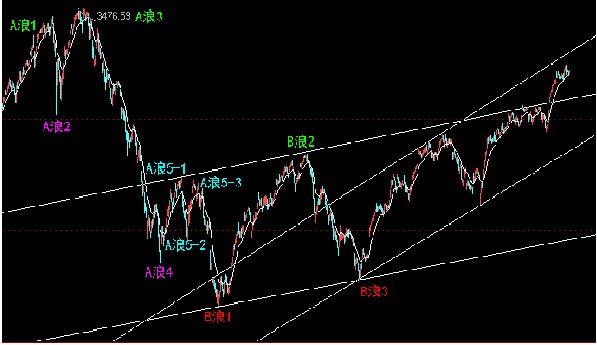从波浪走势上看:波浪理论讲述的是只是趋势的方向;推动浪是5个子浪组成由,所以下跌行情(浪)也可以以5个浪的形态展开。D浪(1664———目前)属于假牛市,呈3浪运行。特征如下:1.D浪是一种变形的部分调整,成交量方面也随之不断增加。2.D浪形成多是“V”形反转形态完成,并连续以大阳线向上拓展空间,表现出强劲的反弹特征。1664点---2100点为D浪第一小浪,2100点---1814点为D浪第二小浪。1814点以来的上涨属于D浪的第三小浪。2037点---3453点的上涨是D浪第三小浪的主升浪,形成扩散喇叭型,当喇叭型向上冲刺时,理论上是一次消耗性上升的开始,显示市场激动的投资情绪进一步扩大,投资者已完全失去理性的控制,疯狂地不计价追入。当购买力消耗完结后,便大幅跌下来。第4浪多以比较复杂的形态