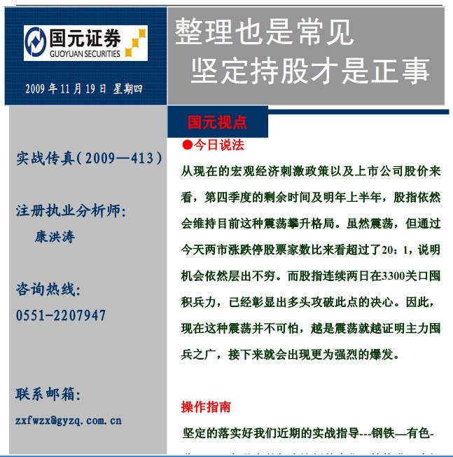 今日说法从现在的宏观经济刺激政策以及上市公司股价来看,第四季度的剩余时间及明年上半年,股指依然会维持目前这种震荡攀升格局。虽然震荡,但通过今天两市涨跌停股票家数比来看超过了20:1,说明机会依然层出不穷。而股指连续两日在3300关口囤积兵力,已经彰显出多头攻破此点的决心。因此,现在这种震荡并不可怕,越是震荡就越证明主力囤兵之广,接下来就会出现更为强烈的爆发......