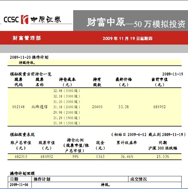 11月19日50万模拟投资(一)