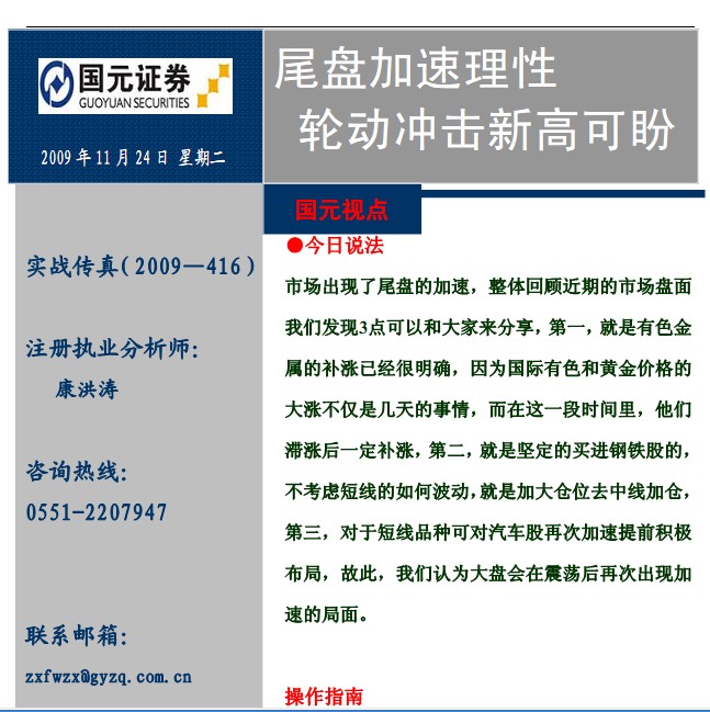 11月24日国元证券实战传真