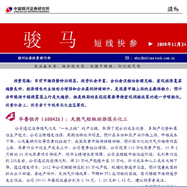 11月24日银河证券骏马(短线快参)