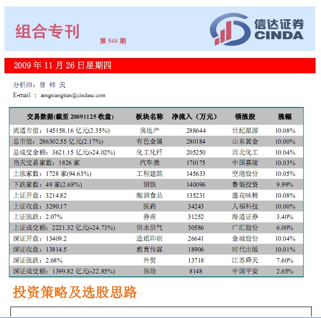 http://www.zdcj.net 2009-11-26 来源:东方财富