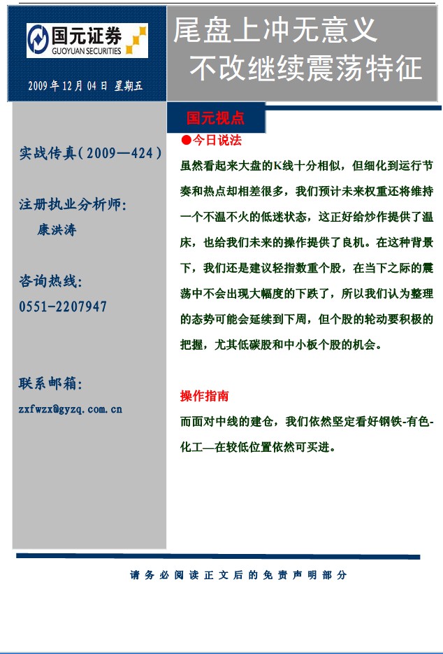 12月4日国元证券实战传真