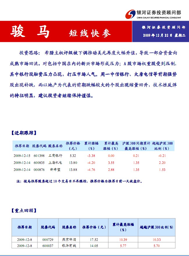 12月22日银河证券骏马(短线快参)
