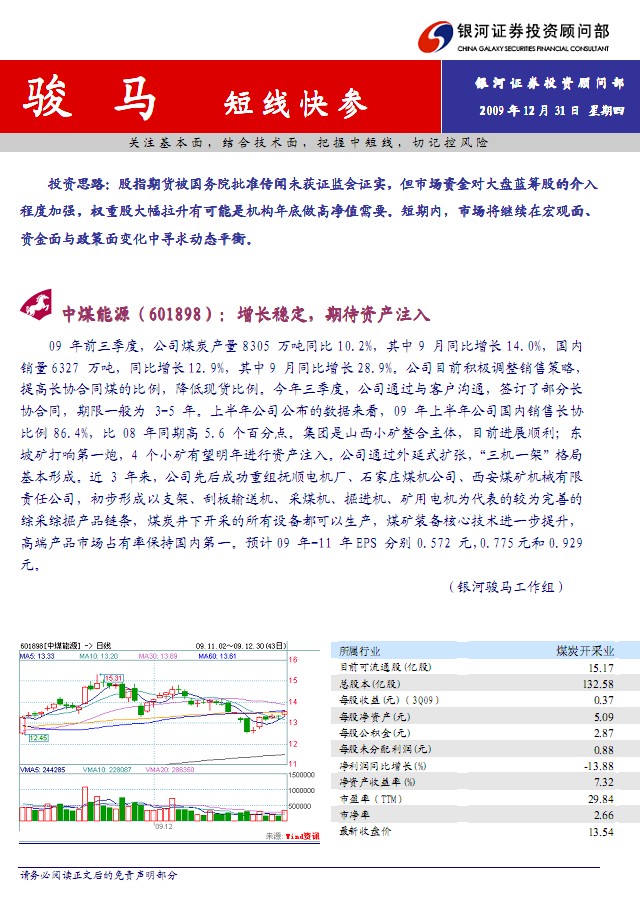 12月31日银河证券骏马(短线快参)