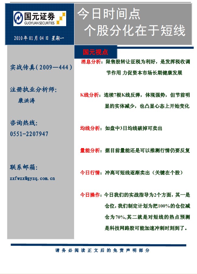 1月4日国元证券实战传真