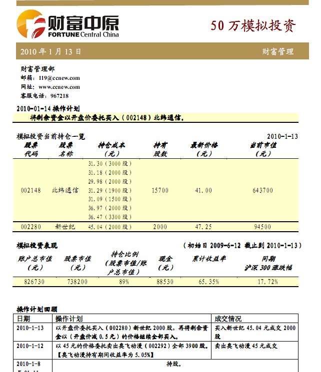 1月13日50万模拟投资(一)