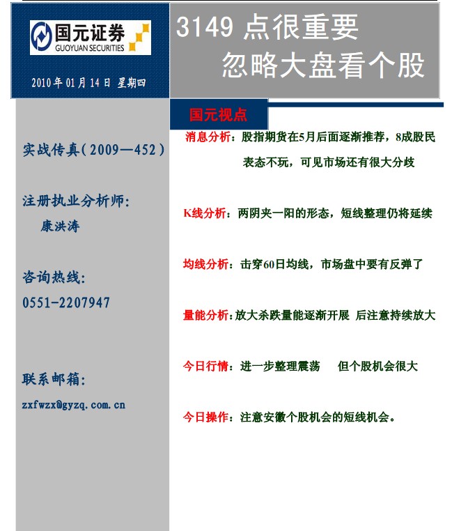 1月14日国元证券实战传真