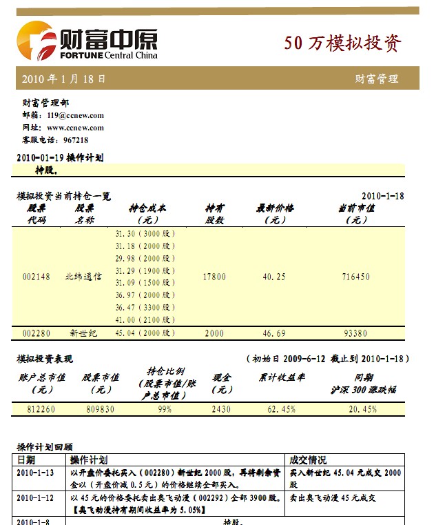 1月18日50万模拟投资(一)