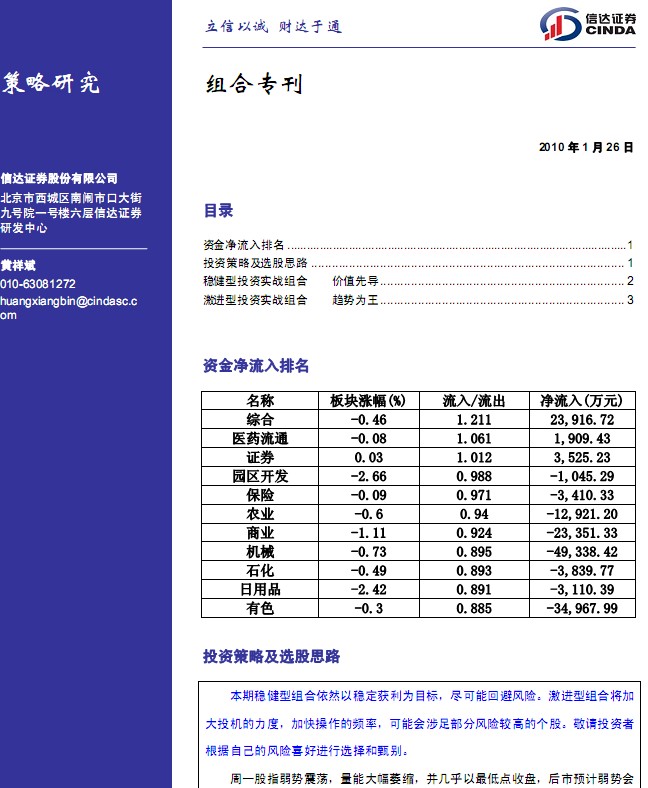 本期稳健型组合依然以稳定获利为目标,尽可能回避风险。激进型组合将加大投机的力度,加快操作的频率,可能会涉足部分风险较高的个股。敬请投资者根据自己的风险喜好进行选择和甄别。 周一股指弱势震荡,量能大幅萎缩,并几乎以最低点收盘,后市预计弱势会延续。降低仓位,重点关注一些主题投资性板块的操作机会.......