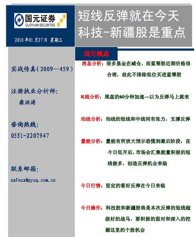 国元视点消息分析 : 很多基金在减仓 , 而蓝筹股近期价格很合理,故此不排除低位买进蓝筹股 K 线分析 :尾盘的 60 分钟加速 — — — — 以为反弹马上就来均线分析 :均线的短线和中线间有张力,支撑反弹量能分析 :量能有所放大预示恐慌到最后阶段,在今日低开后 , 市场会汇集能量积极的短线做多,创造反弹机会来临今日行情 :坚定的看好反弹在今日来临.......