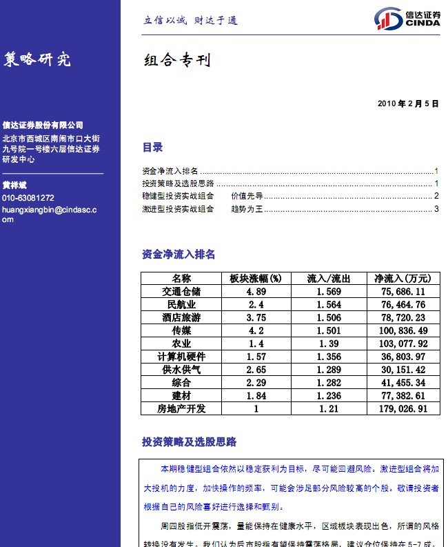 2月5日信达证券组合专刊