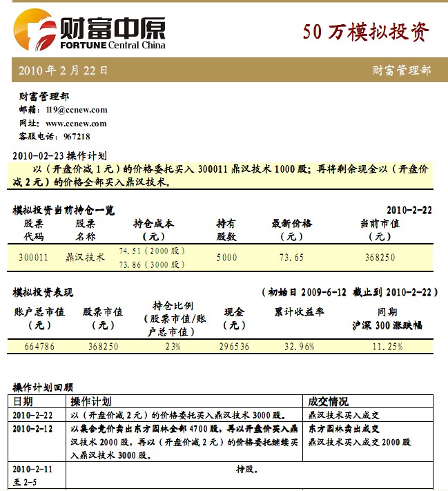 2月22日50万模拟投资