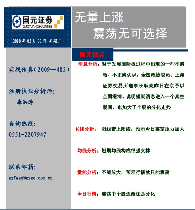 3月9日国元证券实战传真