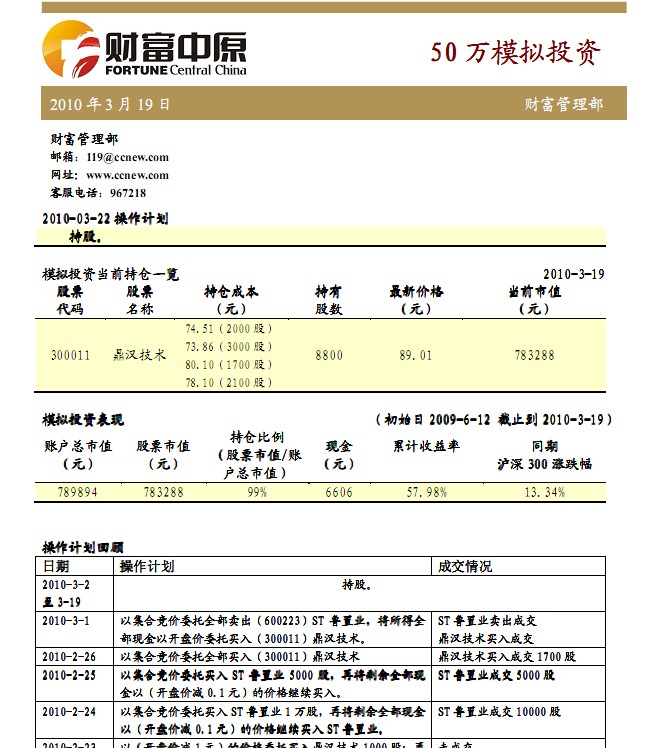 3月19日50万模拟投资