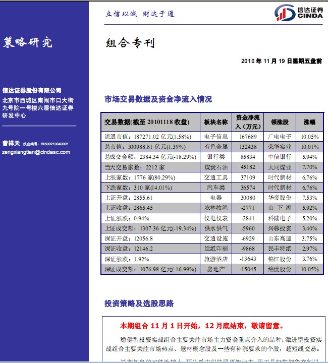 11月19日信达证券组合专刊