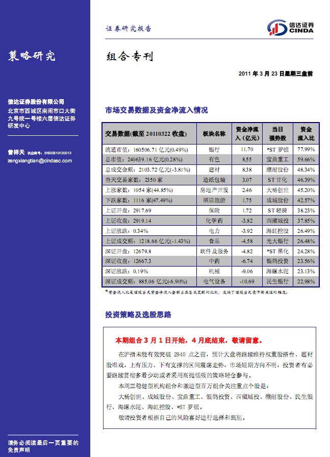3月24日信达证券组合专刊