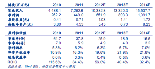 ■新签订单加速。公司住宅精装修业务受房地产调控影响,2011 年以来增速明显下降,2012 年订单增速有所放缓,我们预计公司2012年新签订单总金额约135 亿元,其中公装55%,住宅18%,幕墙25%,其他2%,公装比重明显上升。随着房地产市场的转暖,公司未来在保持公装业务拓展的同时将重新加大住宅精装修的拓展力度,预计2013 年新签订单将加速,增速会有所上升。
