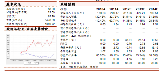 事件:2013 年1 月4 日,三诺生物股价涨停,最终报收于62.26 元,同期申万医药指数下跌1.83%。