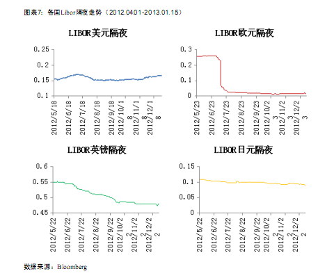 在多数业内人士看来,现阶段市场资金面之所以异常充裕,主要来源于两方面因素。首先,2012 年12 月份巨量的财政性存款投放依然充斥在市场中;其次,业界普遍预计后续外汇占款将有所回升。