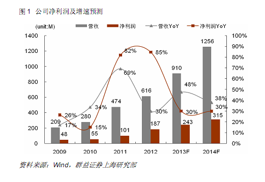 公司之前的成长性与iPad 相关性较强,2013 年在iPad 增速放缓的背景下,成长速度会有所放缓,但公司依靠3D 热压技术已切入iMac、MacBook pro等新品,这些将会是未来业绩增长的亮点。综合考量,预计公司2013-2014可实现净利润分别为2.43 亿、3.15 亿,YoY 增长30%、30%,对应EPS 为2.02元、2.63 元;目前股价对应2013-2014 年PE 分别为24 倍、18 倍;维持“买入"的投资建议。