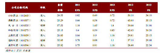 城镇化促使我国县级医院发展"大提速"。被城镇化人口增加使城镇医保筹资额大幅增长;被城镇化人口可支配收入大幅增长提高其医药支付能力;对于未来没有被城镇化人口,新农合筹资额将逐年增加; 对于未被城镇化的农民,新农合报销比例增加有利于其在县级医院消费。我们认为:2012 年医药终端增长率约为18%;2012 年我国县级医院药品市场规模约1399 亿元,每年我国新增城镇化人口带来县级医院市场容量增长226 亿元,使县级医院药品容量新增率约17%; 因此未来3 年我国县级医院药品市场容量复合增长率约35%。