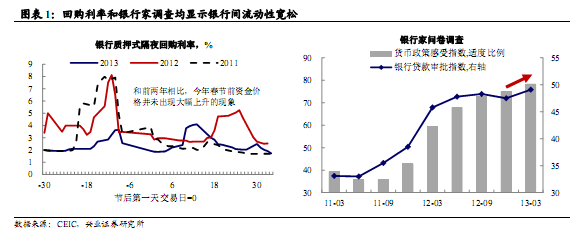 银行间流动性宽松,企业现金流状况改善。从资金供给来看,回购利率和银行家调查均指向银行间流动性保持宽松。从资金的需求方来看,银行贷款掌握情况指标显示认为银行贷款偏松的企业占比有所回升。另外,信托委托贷款的上升以及地产销售的火爆使地产商和基建相关企业的现金流也持续改善。