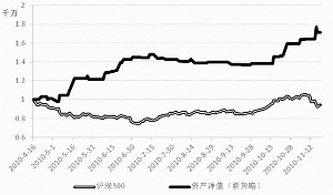 从图1可以看出,该交易策略的资产净值在整段模拟期间形态良好,呈现出平稳增长的趋势。但由于最近两周资产净值主要表现出震荡的特征,该交易策略的夏普比率略有下降(现为20.18%),但累计收益率依然保持在95%左右,仍远远超出沪深300指数的当期收益率。