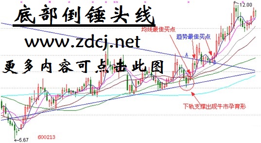 - 底部倒锤头线(分类:K线在线教学视频)底部倒锤头线在线教学视频长长的上影线是锤子的把手,处于K线末端较短的实体是锤子,看起来像是一把锤......