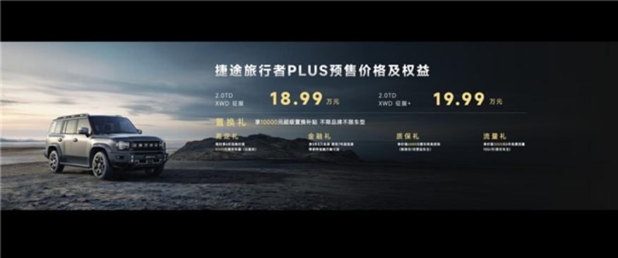 捷途旅行者PLUS,官方指导价18.99-19.99万元。捷途旅行者PLUS C-DM,官方指导价18.99-20.99万元。同时,捷途汽车还为消费者带来多重购车权益: