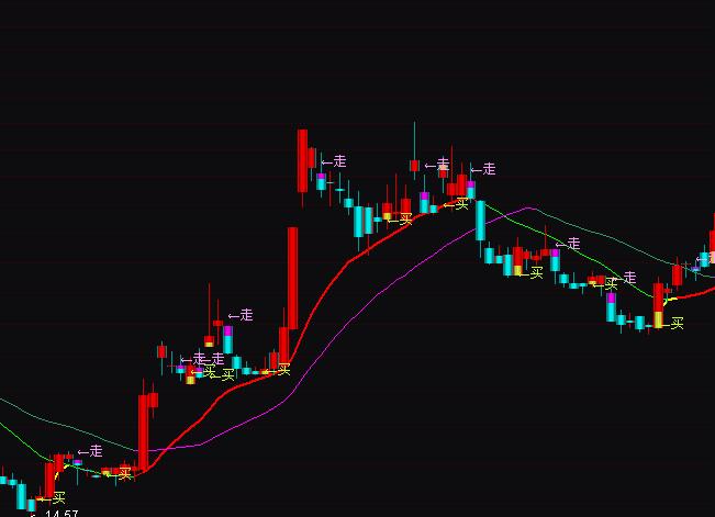 DRAWTEXT(VAR1A>0,REF(C,1)+0.1,'←走'),COLORFF99FF;