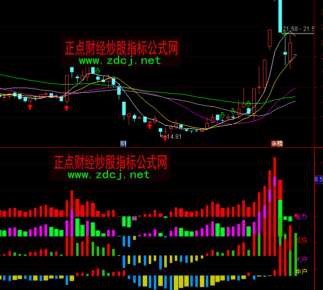 操盘2:STICKLINE(大户量>=0 AND 大户量>=REF(大户量,1),1.5,1.5+大户量,1,0),COLORRED;