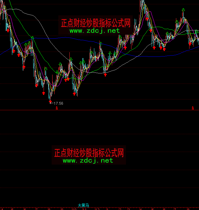 DRAWTEXT(CROSS(趋势线,0)AND 黑马线<40,50,'大黑马'),COLORFFFF00;