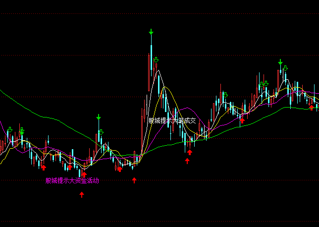 DRAWTEXT(VAR1C AND COUNT(VAR1C,30)=1,LOW*0.95,'股城提示大笔成交') COLORWHITE;