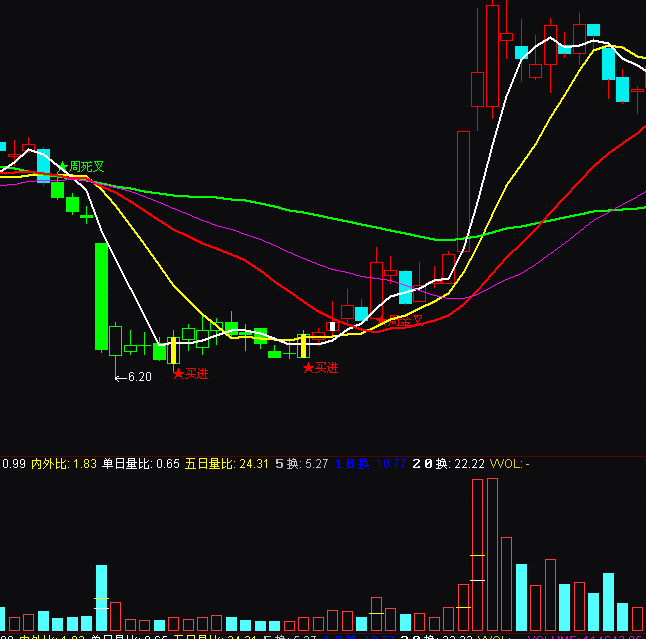 五日量比:V/(REF(MA(V,5),1)/240*FROMOPEN),COLORYELLOW,NODRAW;
