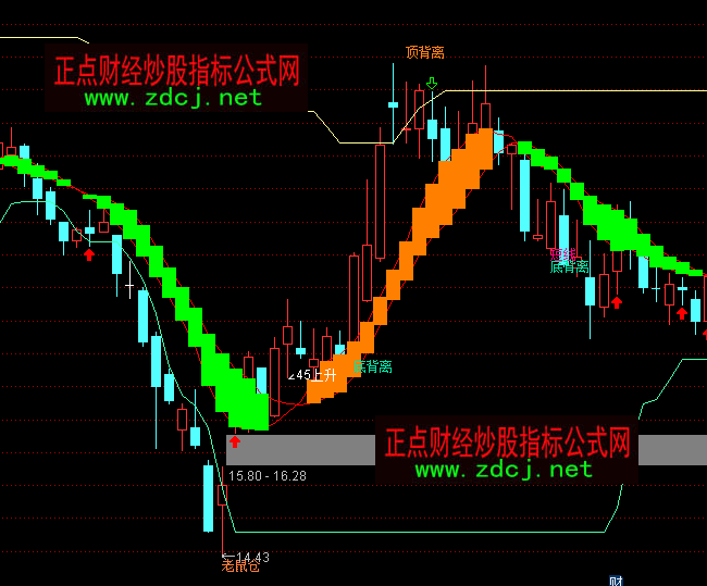 通达信顶底背离和压力支撑主图指标公式实例图解: