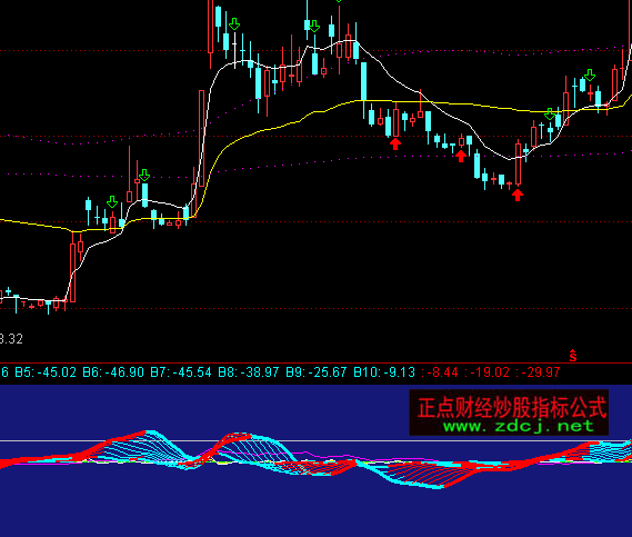 {PARTLINE(B8,B8>REF(B8,1),RGB(255,0,0));}
