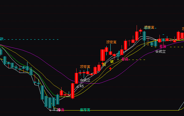 DRAWTEXT(条件成立2,REF(LOW,BARSLAST(立桩量2)),'看涨'),COLORLIMAGENTA;