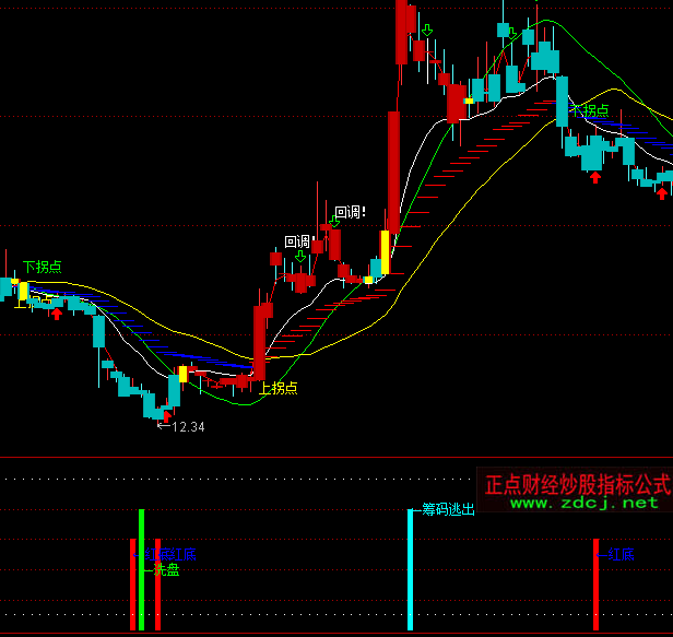 通达信红底白顶顶底买卖指标公式实例图解: